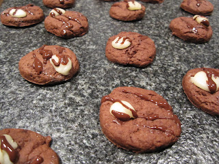 Druk de balletjes een beetje plat en duw dan een kers in het midden van elk koekje. Bak de koekjes 10-15 minuten in de voorverwarmde oven. De baktijd kan iets langer zijn naargelang het type oven. De koekjes zijn voldoende gebakken als ze goudbruin zijn. Laat de koekjes na het bakken nog even afkoelen in de oven en laat ze daarna volledig afkoelen op een taartrooster.